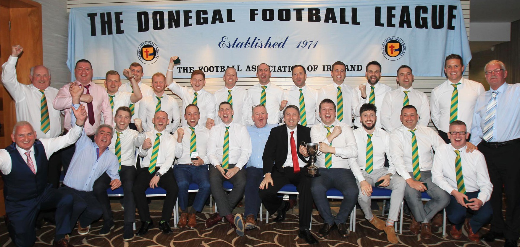 Temple Domestic Appliances Division One Winners Bonagee United pictured with sponsor Cathal Temple at the Donegal Junior League’s Annual Presentation Function in the Radisson Blu Hotel, Letterkeny on Saturday night last.