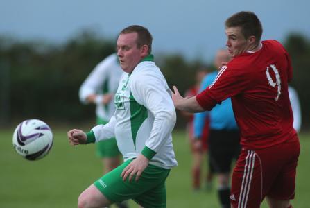 Christopher-Burke-and-Kyle-Lafferty-compete-for-the-ball-during-the-Cappry-Rovers-v-Letterbarrow-Celtic-match