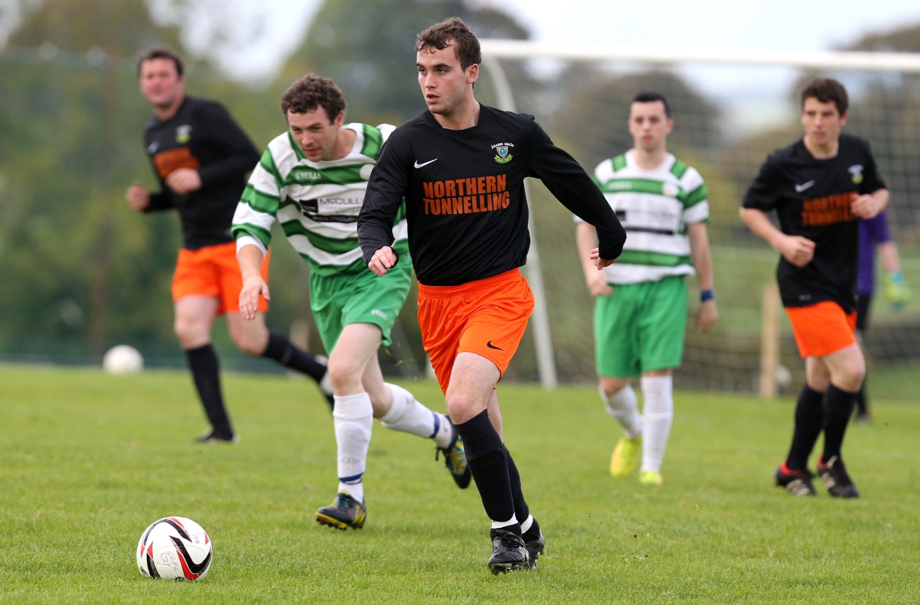 Arranmore United's Michael Mc Hugh brings the ball forward during his side's Saturday League victory over Castlefin Celtic Reserves at Park View. Pic.: Gary Foy, League PRO